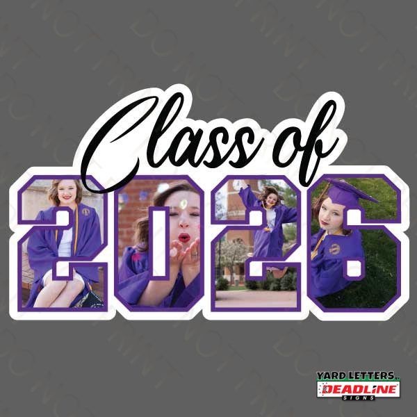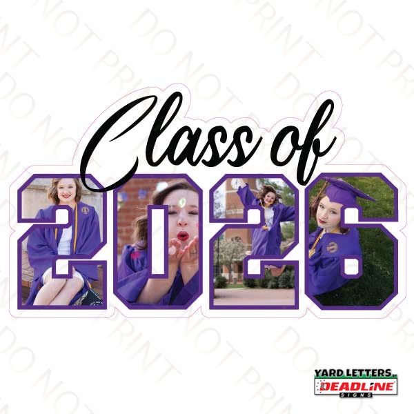 You choose your size and color, while also adding personalized images of your graduate. The color will only be adjusted as the “outline color” you specify.